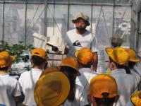 また、おいしいいちごをたくさん作るための工夫などを教えていただきました。工夫の一つに生き物を活用していることがありました。受粉させるためにミツバチを飼っていたり、納豆菌や乳酸菌などの微生物の力を借りて作った発酵液肥を水と混ぜて散布して苗の保湿したりしているという話に興味深く耳を傾けていました。