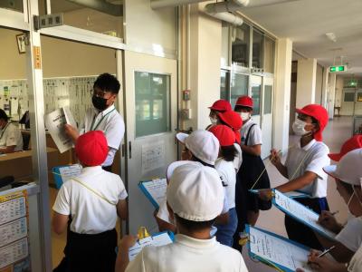 9月30日には、校内探検をして、校内の災害対策について教頭先生に質問したり、防災倉庫を見学したりしました。